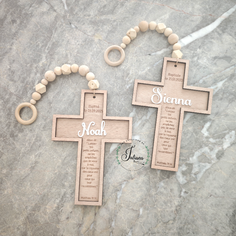 Une douce croix unique à offrir, personnalisable à souhait, n’hésitez pas à me contacter si vous souhaitez une modification particulière.